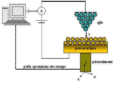 Schemat budowy skaningowego mikroskopu tunelowego (STM).
