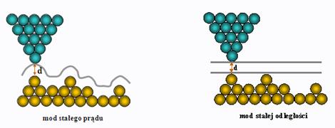 Obrazowanie powierzchni za pomocą mikroskopu STM może być realizowane w modzie stałego prądu lub stałej odległości. Praca w modzie stałego prądu polega na utrzymaniu stałej wartości prądu tunelowego niezależnie od zmian topografii powierzchni. Uzyskuje się to za pomocą systemu pętli sprzężenia zwrotnego, która zapewnia utrzymanie stałej szerokości bariery tunelowej. W tym modzie informację o topografii próbki niesie w sobie sygnał z pętli sprzężenia zwrotnego.